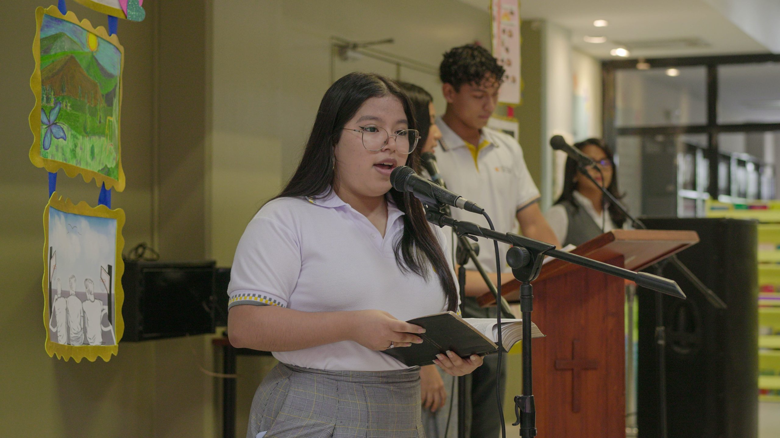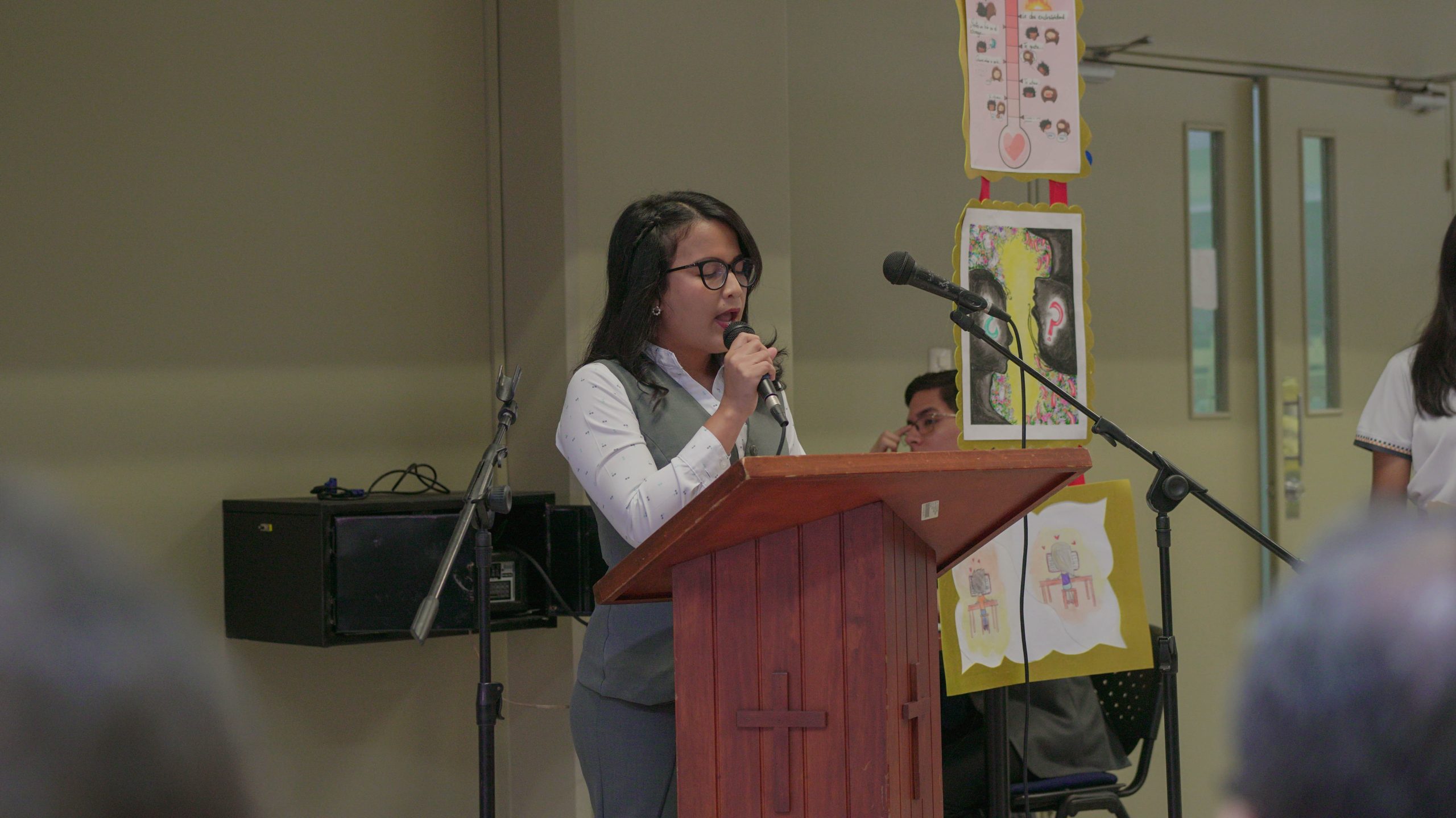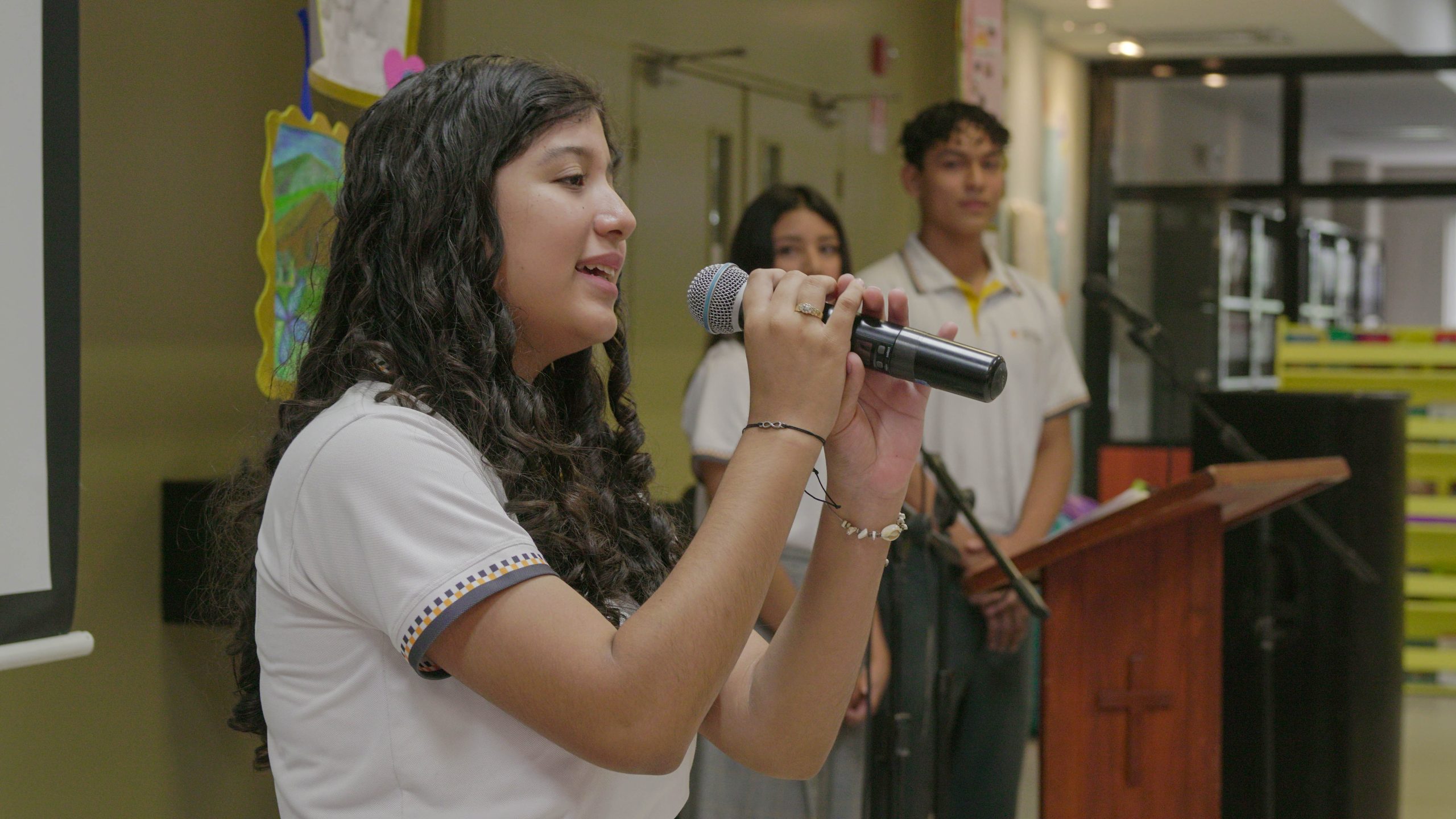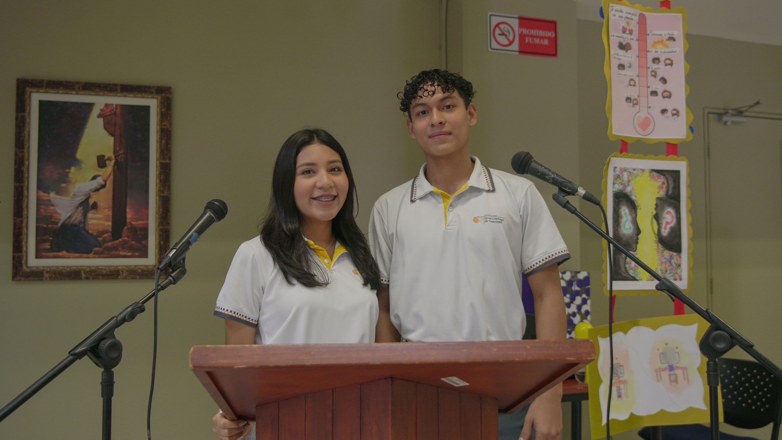 La estudiante Sofía Caro nos cantó un hermoso canto titulado “Alma, corazón y vida”, que nos llenó de emoción y espiritualidad. Luego, los estudiantes Carlos Mendoza y Victoria Bravo nos hicieron reír con un sketch titulado “Amorómetro”, que nos mostró la importancia de la amistad y el amor en nuestras vidas.
