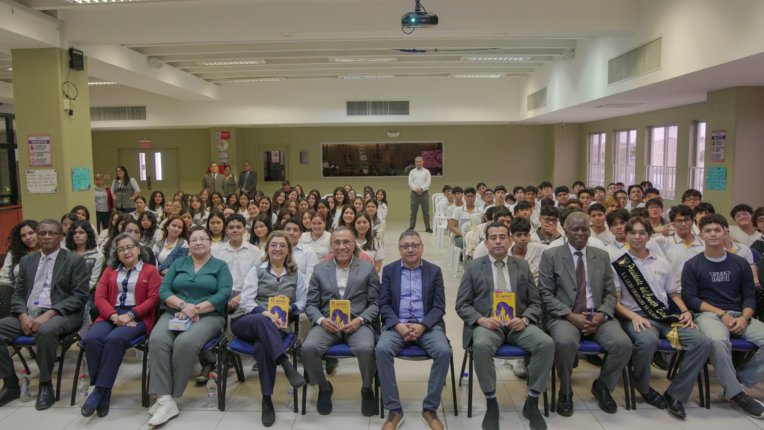 La Lcda. Pamela Quinde, maestra de la institución, nos dio la bienvenida y presentó al autor. Luego, la estudiante Lara Campoverde nos deleitó con un poema titulado “El amor es un no sé que”, que nos hizo reflexionar sobre la importancia del amor en nuestras vidas.