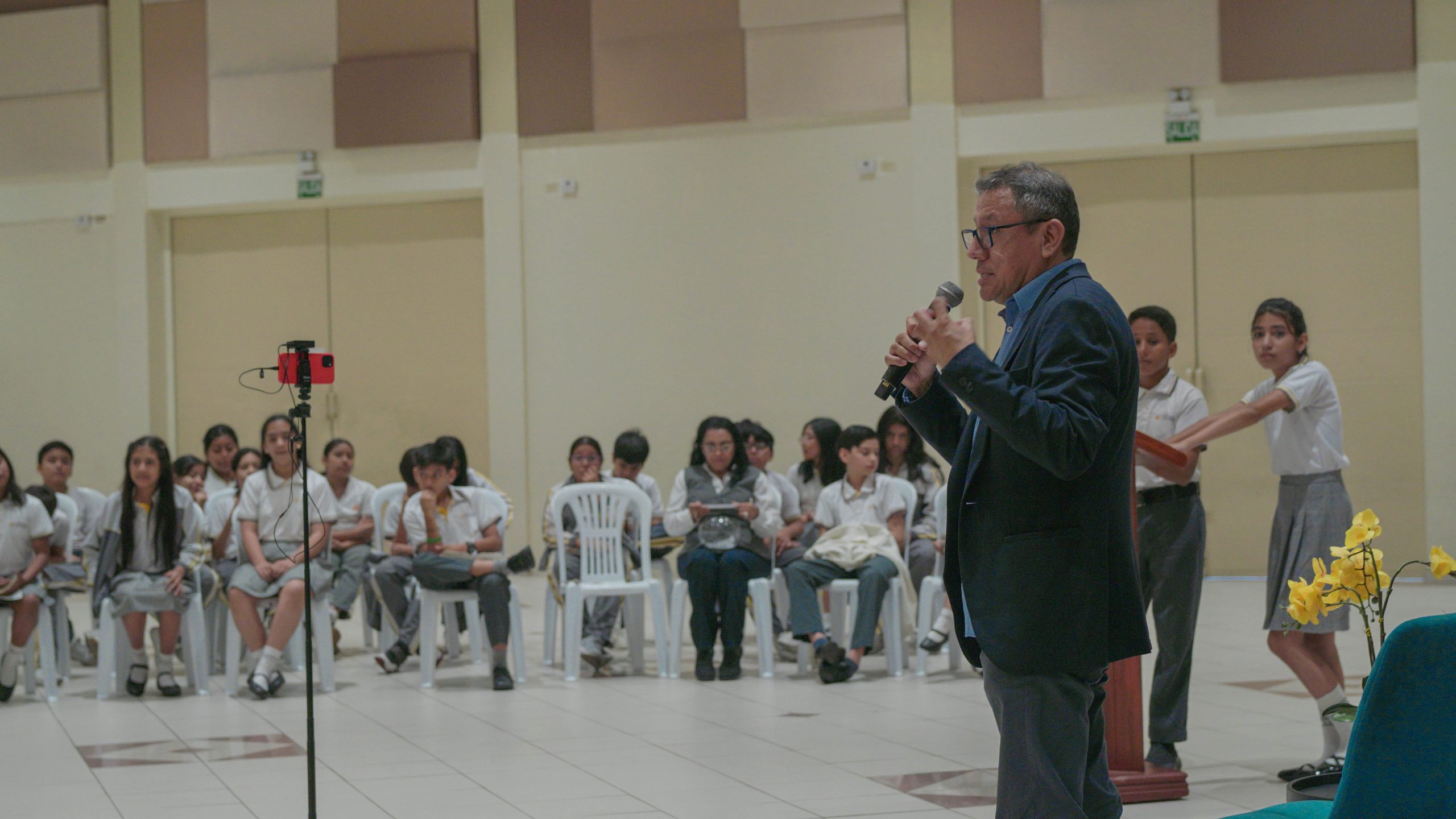 El autor Mario Conde nos saludó y nos compartió sus experiencias y reflexiones sobre la vida y la literatura. Los estudiantes tuvieron la oportunidad de hacerle preguntas y conocer más sobre su vida y obra.