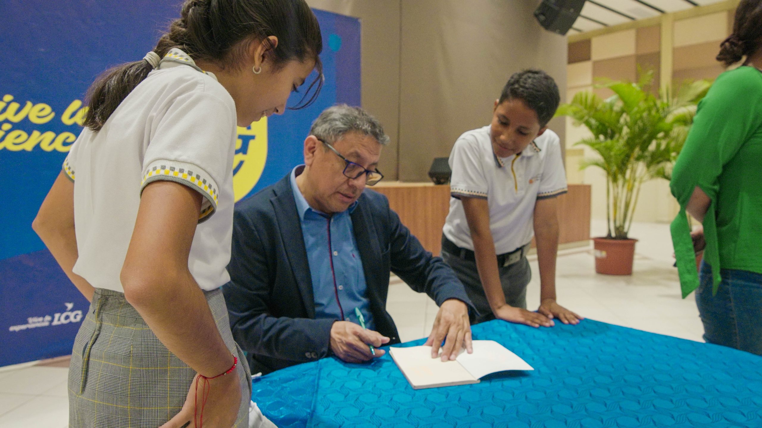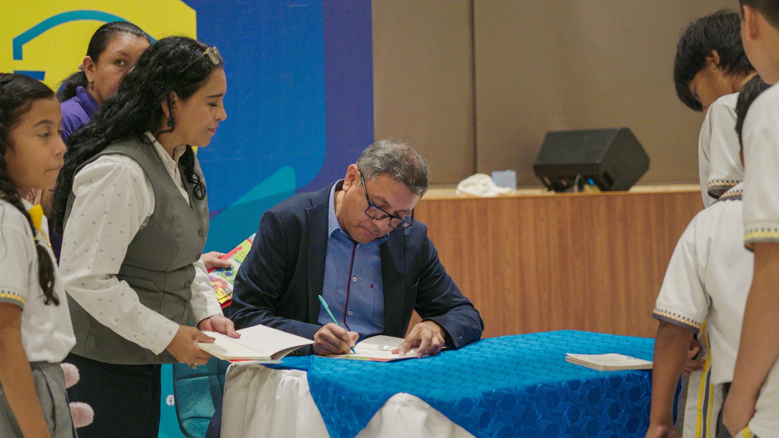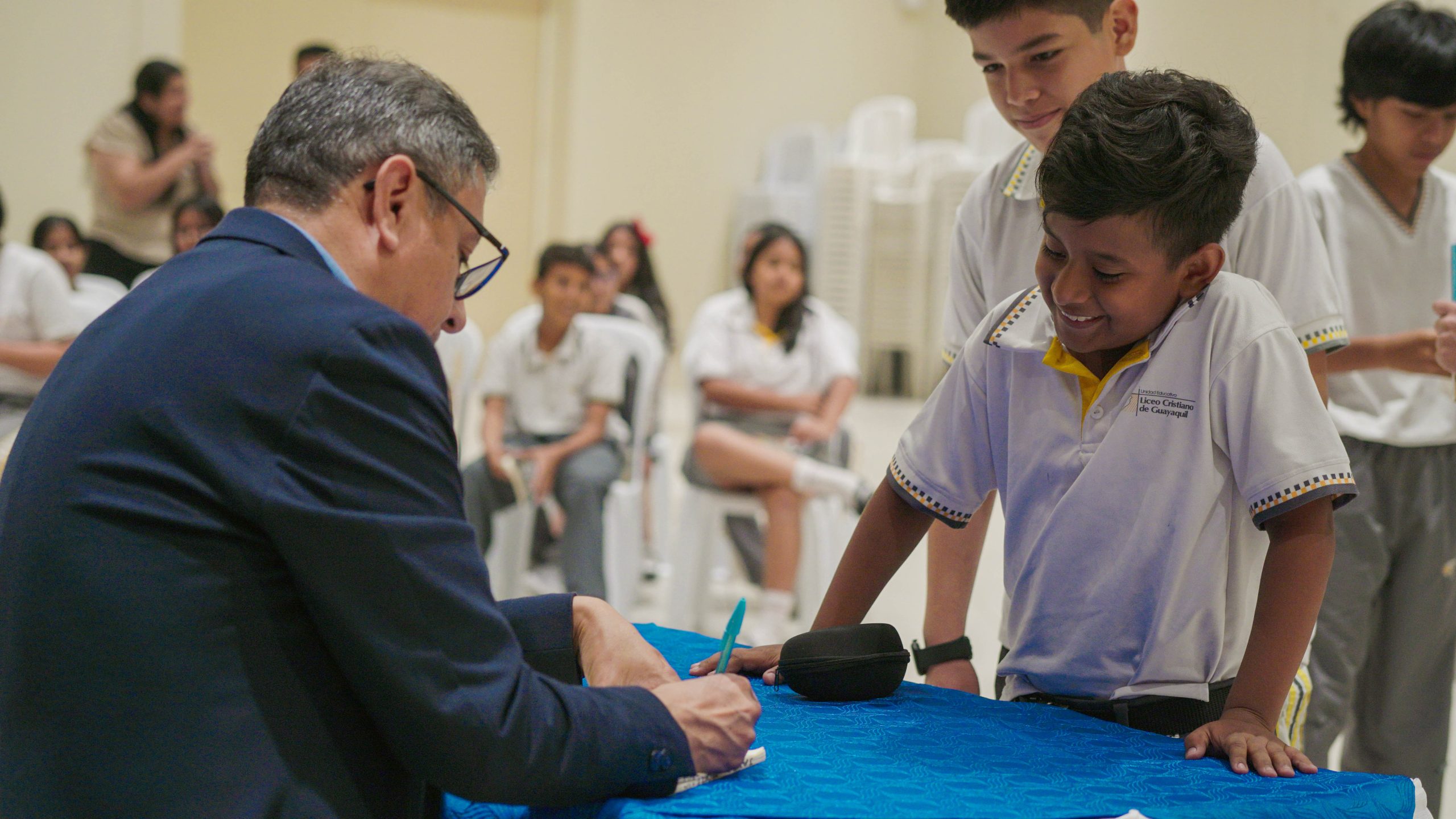 Al final del conversatorio, los estudiantes y profesores tuvieron la oportunidad de tomar fotos con el autor y obtener libros autografiados.