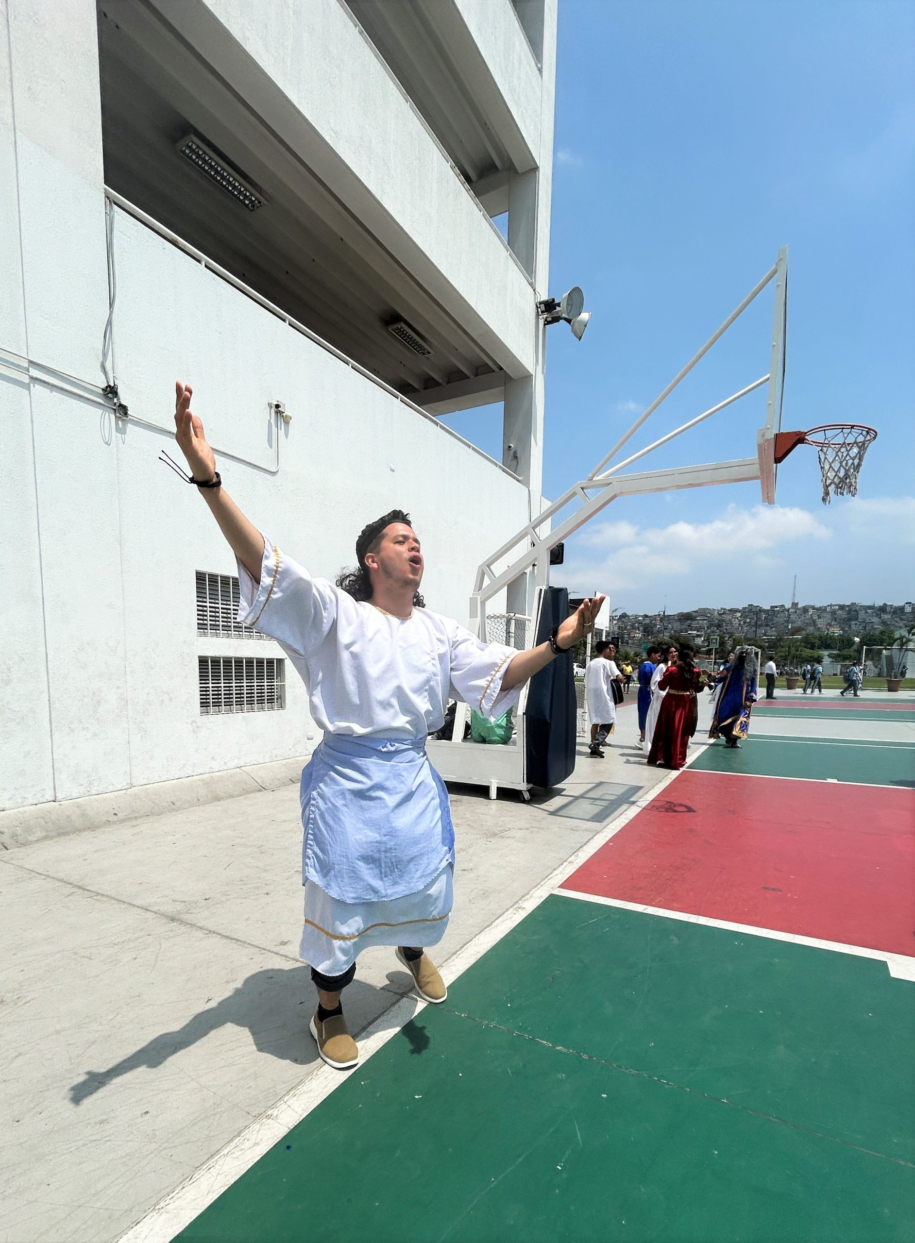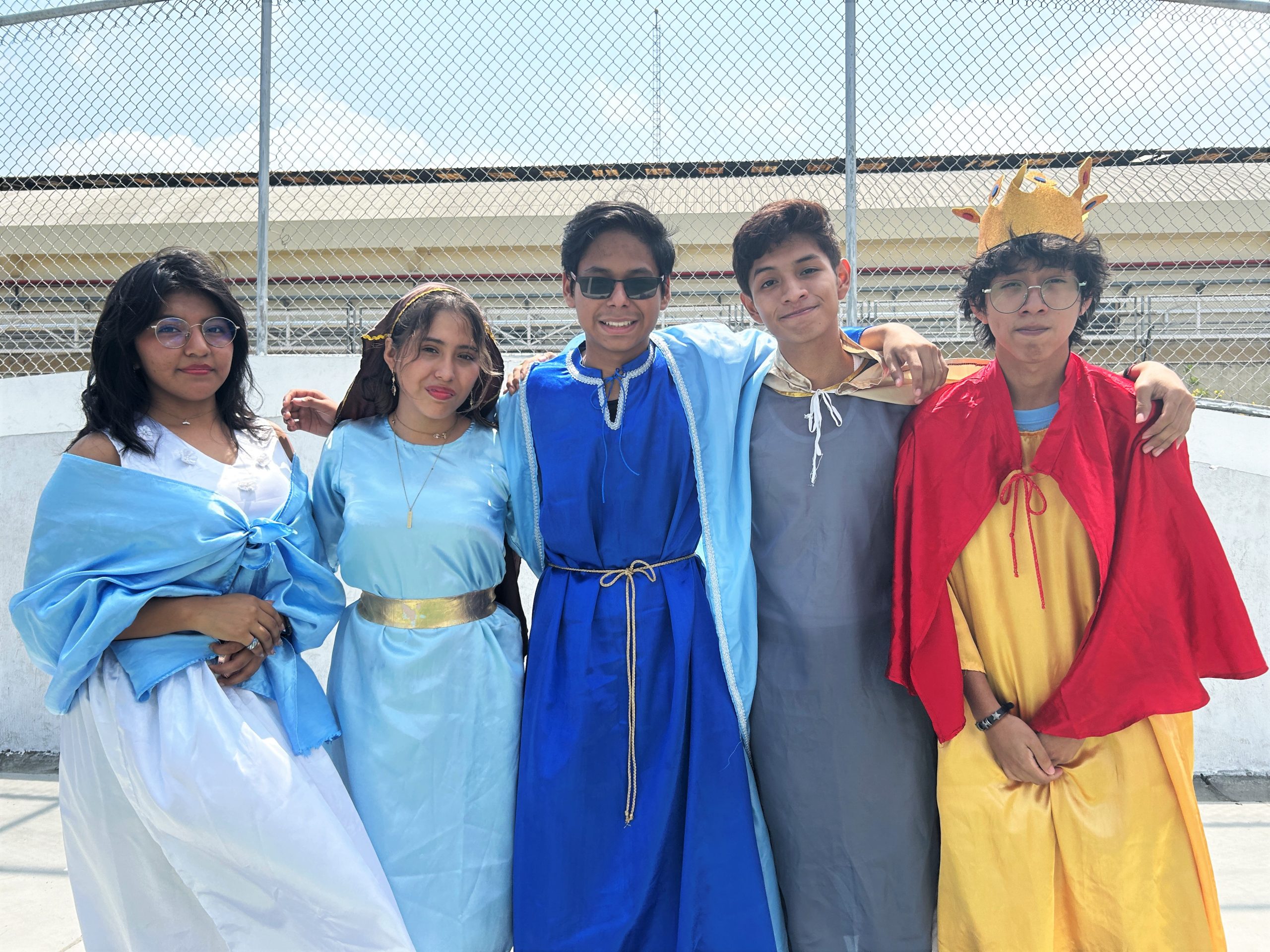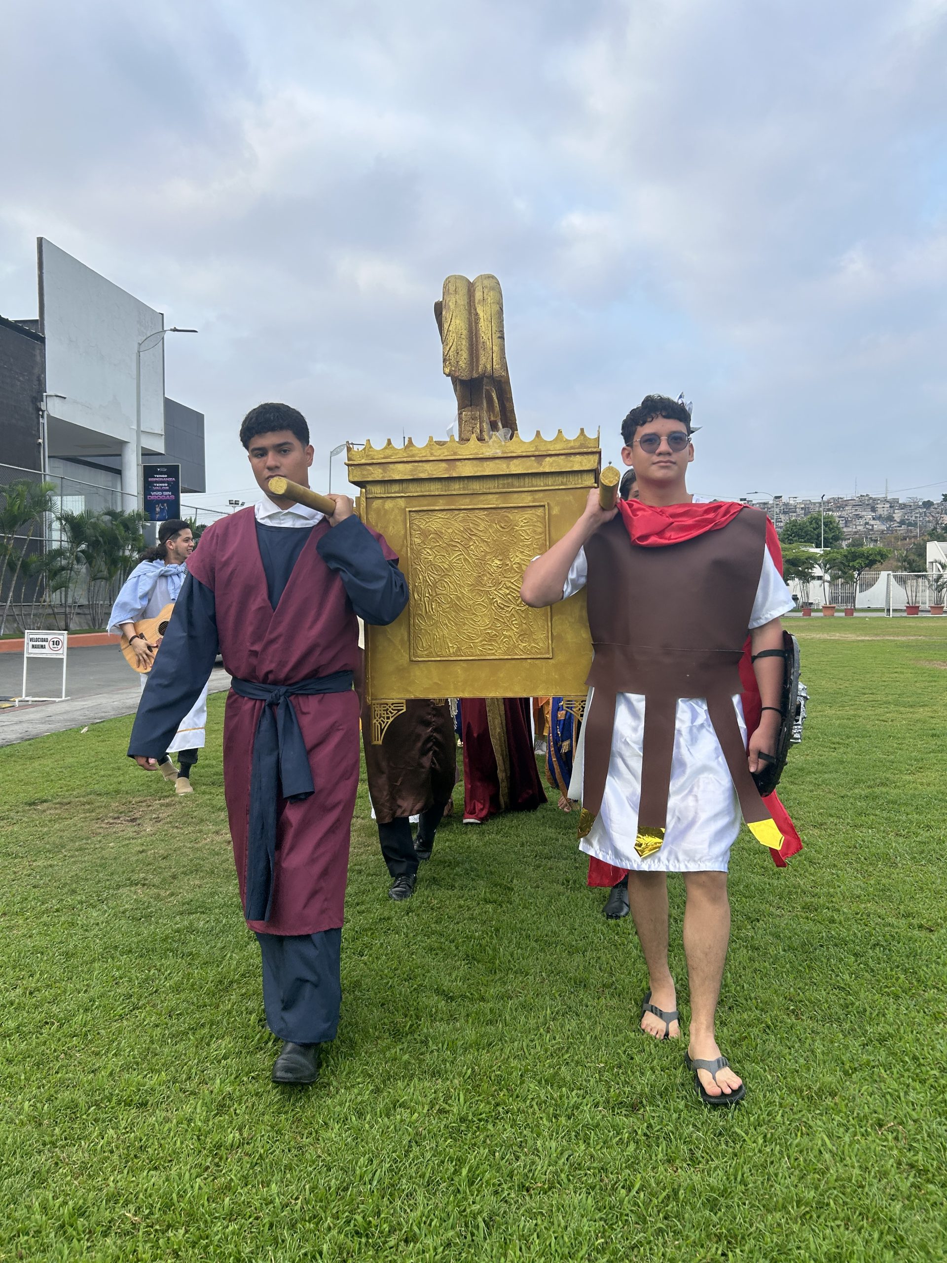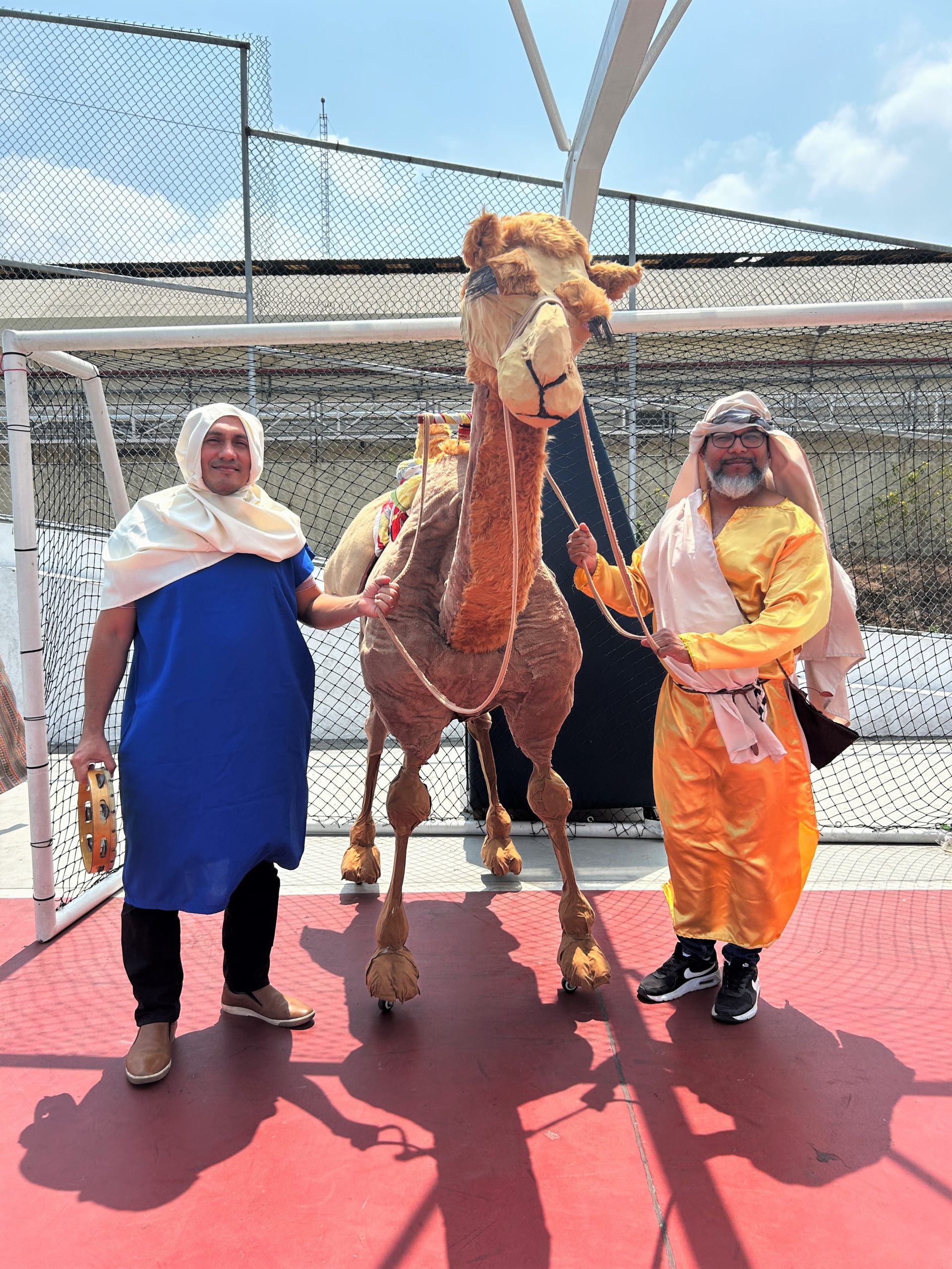 Nuestros estudiantes, vestidos con trajes bíblicos, recrearon una procesión inspirada en las antiguas tradiciones hebreas, tocando el shofar y utilizando un camello de utilería.