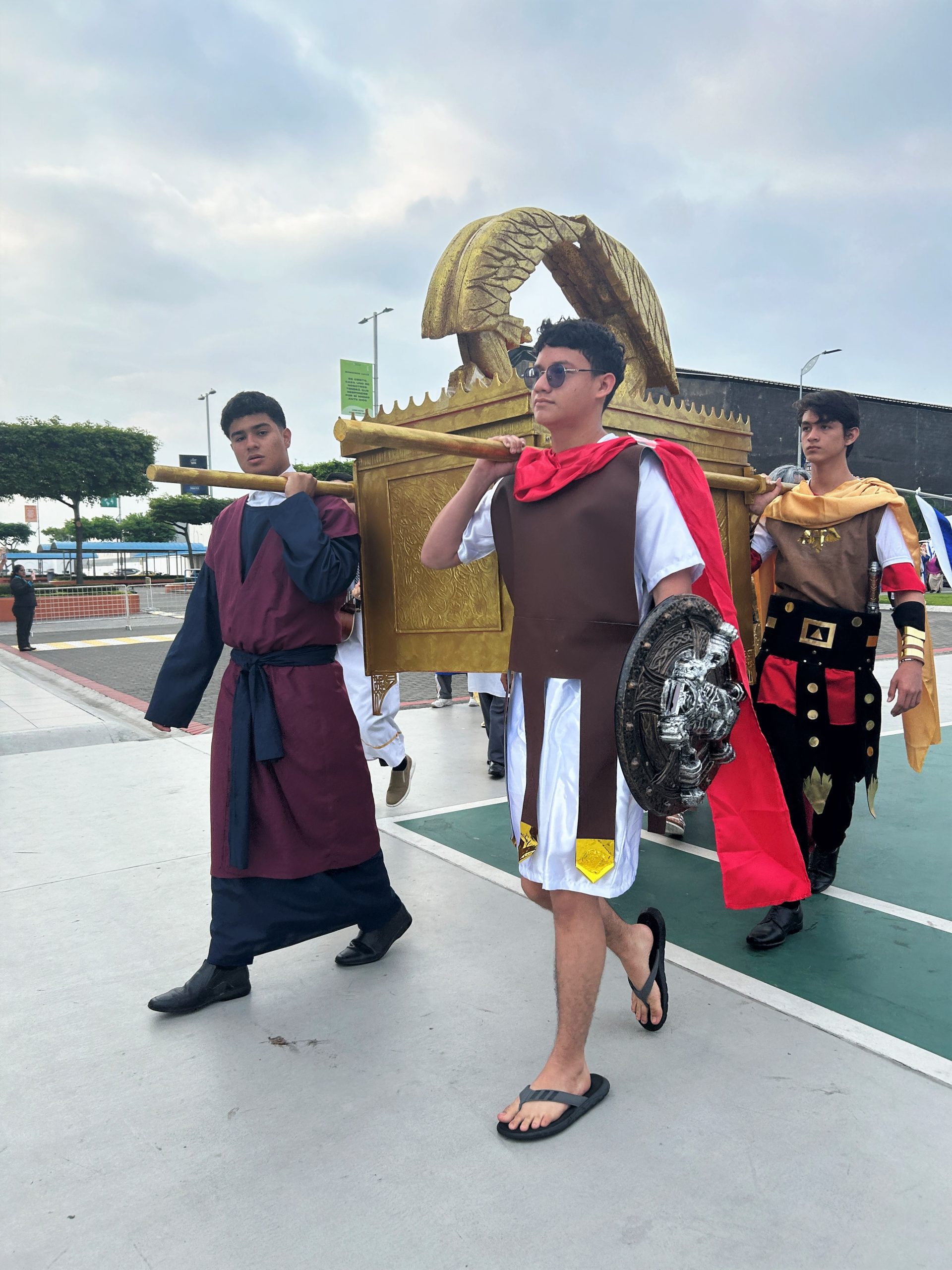 Representaron al pueblo hebreo con gran reverencia, comenzando con el Arca del Pacto, cargada por cuatro levitas. Músicos, cantores y danzoras avivaron el ambiente con alabanzas al Señor.